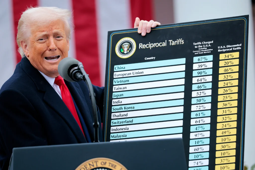 Em abril do ano passado, Trump anunciou tarifas adicionais sobre vários países do mundo. O presidente norte-americano argumentou à época que o aumento das taxas aumentaria a arrecadação de impostos do governo, incentivaria os consumidores a comprar mais produtos fabricados no país, e impulsionaria o investimento no país. (Metropoles)